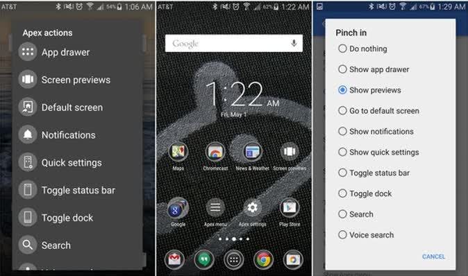Het is de moeite waard, aangezien je eenvoudig het aantal apps je in de dock, het uiterlijk van notificaties en de volgorde van je thuisschermen kunt veranderen. Maar de meeste kracht zit hem in aanpasbare Apex Actions, waarmee je een snelle link op een specifiek scherm kunt zetten of een bepaalde functie op het thuisscherm. Je kunt ook door middel van spraak zoeken door vanaf een willekeurig scherm "OK, Google" te zeggen, net als met de Google Now Launcher.