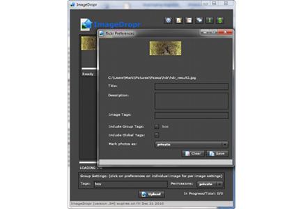 Met behulp van ImageDropr kost het slechts een paar seconden om uw foto's op Flickr te plaatsen.