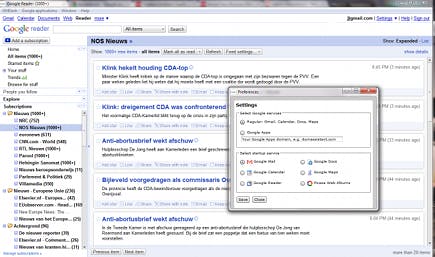 GMDesk zet alle online Google-applicaties, zoals Gmail, Reader en Agenda, samen in één programma. Het verschil met de online versie van de applicaties is dat u zelf kunt bepalen met welke pagina het programma moet opstarten, en dat u via de combinatie 'Ctrl-toets plus cijfer' tussen vensters kunt schakelen. Zo brengt Ctrl+2 u naar de agenda en Ctrl+6 naar Picasa Web Album. Download GMDesk, door op Install here te klikken. Afhankelijk van uw internetverbinding werkt het geheel misschien iets trager dan de online versies van deze diensten, maar de onderlinge schakelingen verlopen juist wat sneller. Een groot nadeel aan GMDesk is dat u in Gtalk geen spraak- en videoverbinding met contactpersonen kunt starten. De hiervoor benodigde plug-in werkt namelijk niet in AIR.