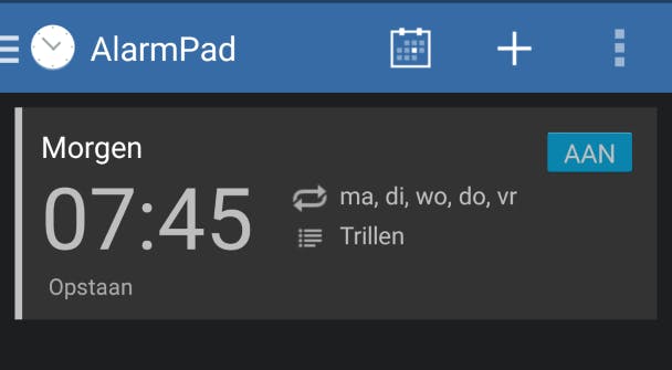 Met AlarmPad heb je een wekker die net even wat meer functionaliteit aanbiedt dan de standaardwekker. Uiteraard is de basis aanwezig, je kunt een aantal alarmen instellen op gezette tijden en dagen. Dat is niet zo bijzonder. Handiger is dat je ook het weersvooruitzicht kan tonen in het alarm en je agenda kunt opnemen in de wekker, zodat de wekker je aan afspraken herinnert. Als je je aanmeldt kun je ook alarmen synchroniseren met andere apparaten. Tegen betaling breidt je de functionaliteit uit met de mogelijkheid het alarm af te zetten met NFC-tags en alternatieve alarmgeluiden. AlarmPad is uitgebreid en overzichtelijk, maar kan alleen niet tippen aan de wekker-app Timely.