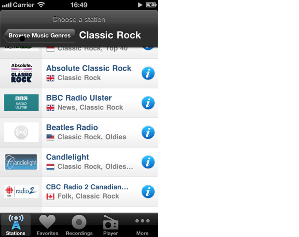 TuneIn Radio Pro is een app die 50.000 internet radiostations bevat. Het is mogelijk de app te minimaliseren terwijl de muziek door blijft spelen, zodat je TuneIn Radio als achtergrondmuziek kan gebruiken. Stations kunnen worden gezocht op genre, aan de hand van trefwoorden of op locatie. Daarnaast is het mogelijk om tot dertig minuten terug te spoelen, waardoor je een leuk nummer nogmaals af kunt spelen. De app is voorzien van een timer waarmee je de app automatisch kunt laten afsluiten. Dit is met name handig als je het prettig vind om met een muziekje in slaap te vallen. Een handige functionaliteit van TuneIn Radio Pro is dat je TuneIn Radio Pro is het opnemen van radiouitzendingen. TuneIn Radio Pro is voor 79 eurocent in de App Store te downloaden.