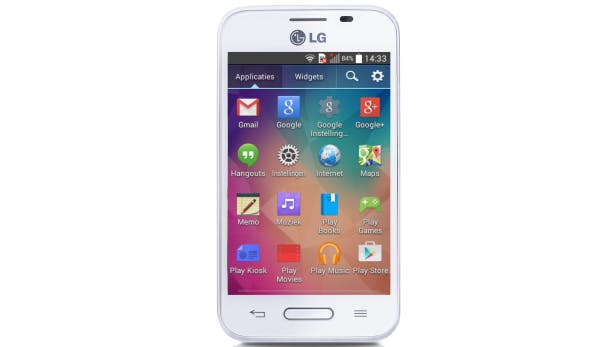 De andere goedkope smartphone is van LG en een kleintje. De L40 heeft een schermdiameter van slechts 3,5 inch en weegt maar 114 gram. Je moet echter even slikken als je het scherm aanzet. Het toestel heeft een ontzettend lage resolutie en je kunt de pixels bijna tellen. Het ziet er niet uit, maar op de resolutie na valt de schermkwaliteit reuze mee. Het scherm is helder, de kleurweergave ziet er keurig uit en zelfs de kijkhoek is acceptabel. Bovendien vraagt het lage-resolutiescherm minder van de systeemcapaciteit, waardoor het toestel vlot werkt en een prima batterijduur heeft. Vergeet je het een nachtje op te laden, dan heb je de volgende dag genoeg capaciteit over om nog even aan de slag te kunnen.