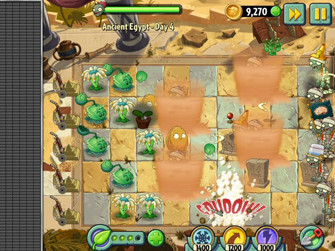 Het eerste deel van Plants vs. Zombies was een wereldwijd succes. Het vervolg volgt dezelfde formule - sla een leger zombies af met knokkende planten - maar is visueel en inhoudelijk vele malen sterker. De verschillende planten die je aan het begin van een level kiest, zijn mooi geanimeerd en hebben elk hun unieke krachten. Het is alleen al heerlijk om een maïskolf klodders boter te zien lanceren. Met Plants vs. Zombies 2 kun je ontzettend lang spelen: de hoeveelheid uitdagingen is overweldigend en telkens krijg je nieuwe personages tot je beschikking.