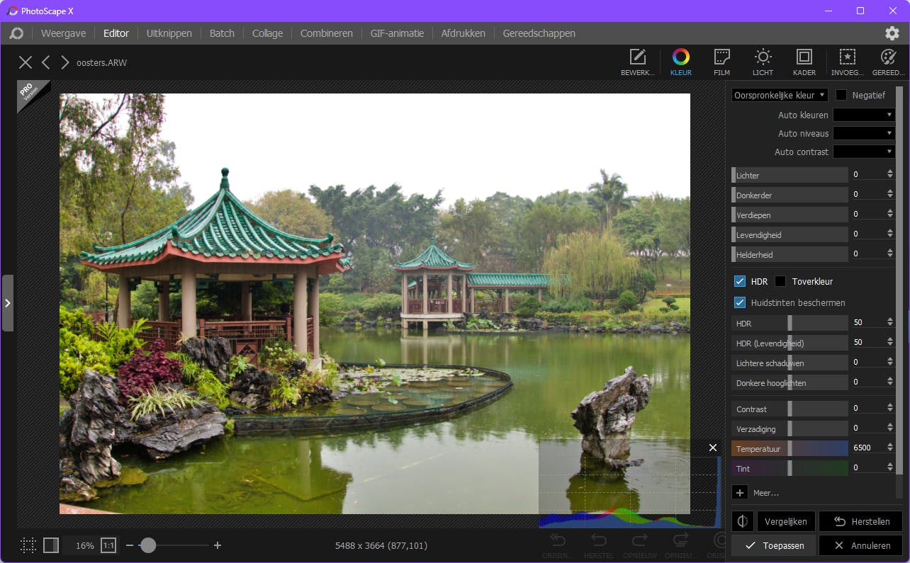 Bij de meeste smartphones kun je een foto bewerken vanuit de camera-app zelf, met basisopties als bijsnijden, aanpassen van helderheid en contrast, en het toepassen van filters. Voor geavanceerde bewerkingen of specifieke tools kun je beter een gespecialiseerde applicatie gebruiken. Dit werkt het best via een desktop-app, zoals het gratis PhotoScape X. De editor biedt een ruime gereedschapskist voor bewerkingen, zoals kleur aanpassen en rode ogen corrigeren. Daarnaast biedt het uitgebreide effecten, maskermodi en tekstbewerking. Er zijn ook modules voor collages, gif-animaties en bewerking in batch.