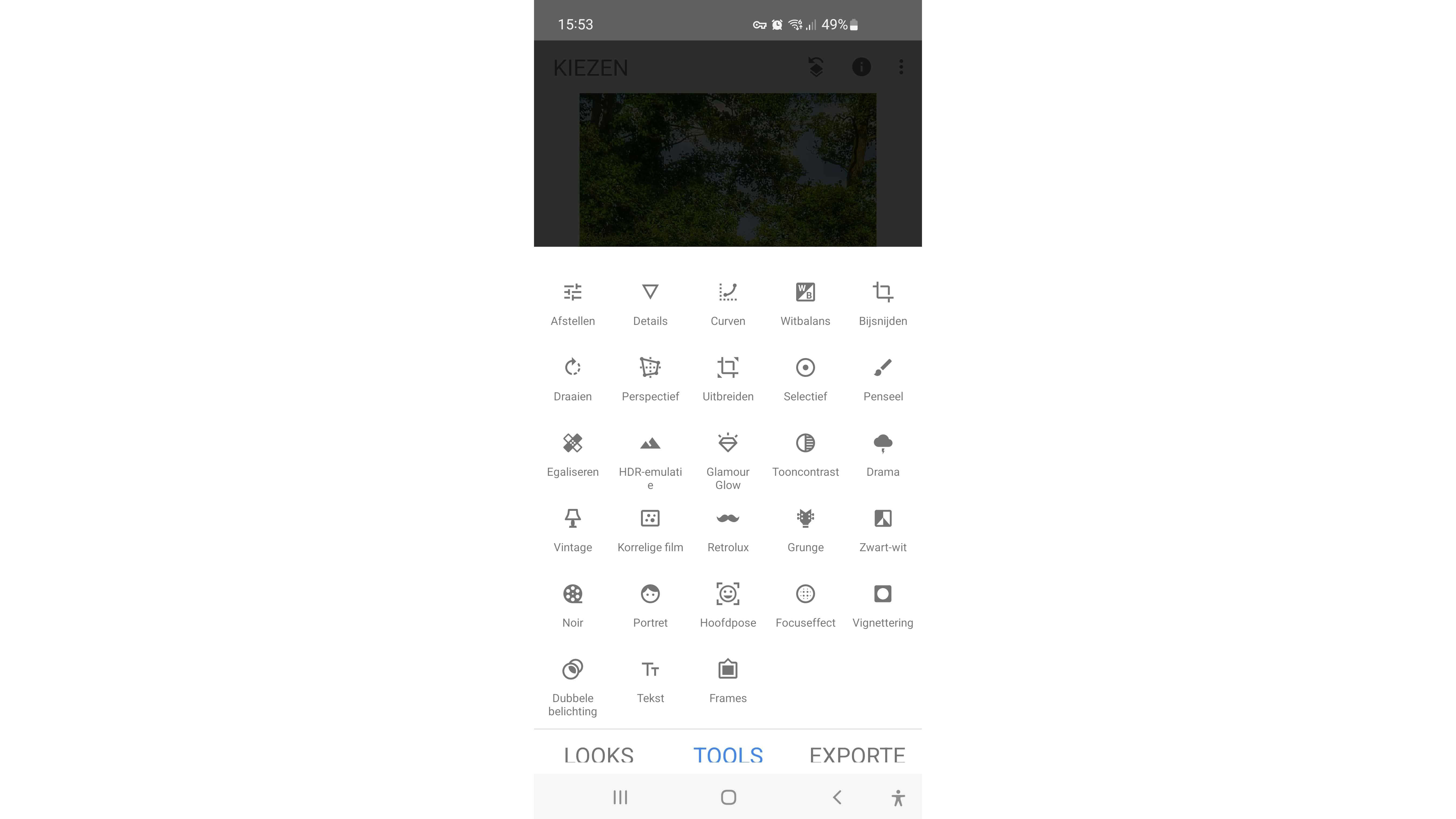 Bewerk je je foto’s het liefst meteen op je smartphone, maar biedt de ingebouwde app slechts een beperkt aantal opties, probeer het dan met de gratis app SnapSeed, beschikbaar in de appstores van Google en Apple. De app is gebruiksvriendelijk, kan overweg met jpeg en RAW-foto’s, en bevat een kleine dertig filters en tools, waaronder Bijsnijden, Perspectief, HDR-emulatie, Vignettering, Tekst en Frames, en geavanceerdere tools als Curven en Witbalans. De meeste kun je eenvoudig bijstellen met een schuifknop.