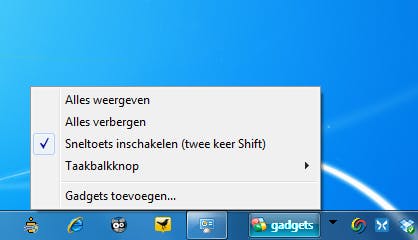 U kunt de zijbalk verkleinen door aan de linkerkant van de zijbalk te klikken en naar rechts te schuiven. Wilt u dat de Google Zijbalk automatisch verdwijnt, dan kan dit ook. Klik hiervoor bovenin op het pijltje naar beneden en selecteer Automatisch verbergen. Onderin de Windows-taakbalk, verschijnt dan een knop waarmee u snel de zijbalk met gadgets weer zichtbaar kunt maken. Ook kunt u twee keer op de Shift-knop drukken om de zijbalk te laten verdwijnen of zichtbaar te maken.