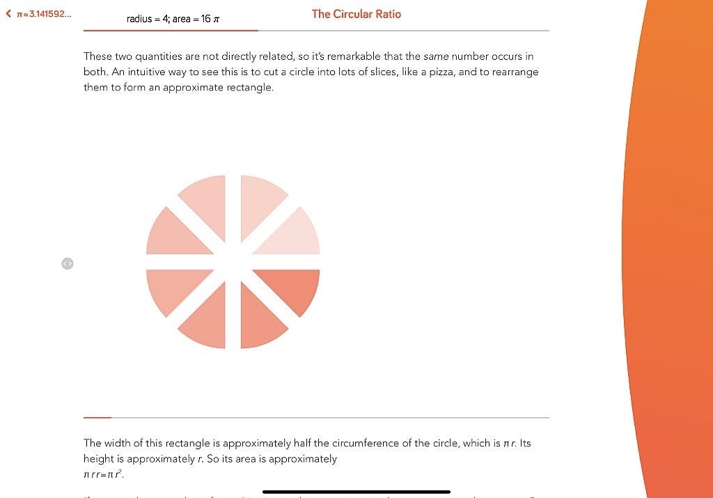 Daarbij helpen manipuleerbare grafieken en afbeeldingen je snel om te begrijpen hoe en waarom iets tot stand is gekomen. Check hoe bijvoorbeeld het getal Pi nou precies tot stand is gekomen, zo heel moeilijk blijkt dat niet te zijn. Zeker niet als je alles gewoon voor je ogen ziet gebeuren. Een heerlijke app om wiskunde (weer?) leuk mee te maken.