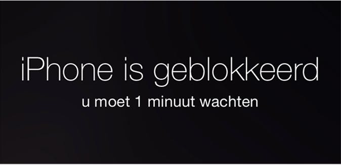 Als je op een iOS-apparaat zes keer achter elkaar de verkeerde toegangscode invoert, wordt het apparaat vergrendeld en krijg je een melding te zien. Je kunt een minuut wachten om het nog een keer te proberen (en daarna steeds langere intervallen), wat handig is als je code je ineens weer te beginnen schiet. Maar als je echt geen flauw idee hebt, of als je het zo vaak geprobeerd hebt dat het niet meer mogelijk is, moet je je apparaat herstellen.