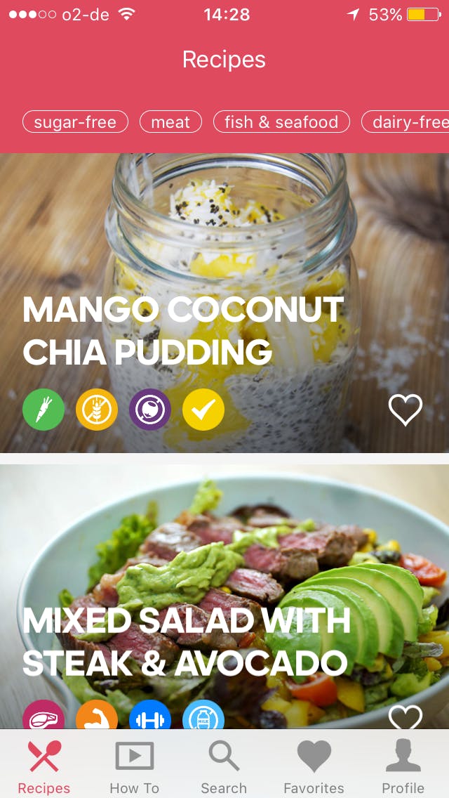 Yummly focust niet alleen op gezonde recepten, maar heeft er wel veel van in de database staan. Als je op Explore tikt, kun je zoeken in verschillende categorieën. Van veel gerechten staan ook handige video´s online.