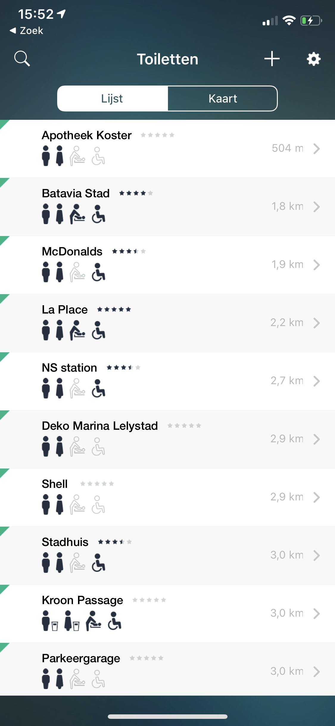 Het is dan wel onze gewoonte om apps geen toegang te geven tot onze locatie, maar bij dit soort apps is het gewoonweg noodzaak. Want wanneer de nood hoog is, wil je niet eerst nog je locatievoorzieningen aan hoeven zetten. Zodra je de app opstart, zie je direct waar je in de buurt een toilet kunt vinden. Daarbij zie je eerst de meest nuttige informatie, zoals de afstand, het soort toilet (man/vrouw/invalide) en of het toilet open is of niet (niet geheel onbelangrijk). Druk je op een toilet in kwestie, dan krijg je nog wat extra informatie te zien, zoals de kosten voor het doen van je boodschap.