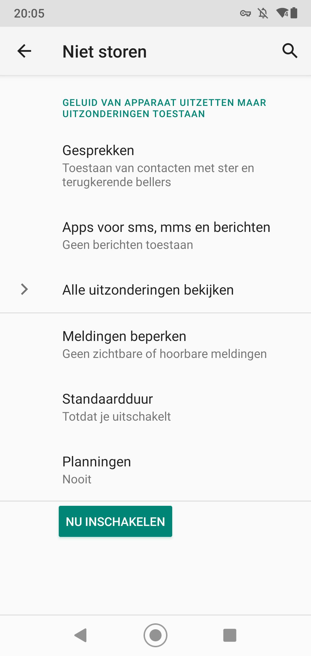 Wat je ook kunt doen is je smartphone tussen bepaalde tijden helemaal geen meldingen meer weer te laten geven. Dit kan in iOS met de optie Niet storen. Je zet de functie aan bij Instellingen / Niet storen. Je kunt het handmatig aan- en uitzetten, maar slimmer is om de schuif achter Gepland aan te zetten. Kies achter Van de begintijd en kies achter Aan de tijd waarop je smartphone weer berichten mag ontvangen. Je wilt natuurlijk wel gebeld kunnen worden in het geval van nood, dus geef wel bij Sta oproepen toe van voor de optie Favorieten. Als er dan iemand belt die jij hebt gemarkeerd als favoriet, wordt deze oproep gewoon weergegeven. Je kunt favorieten selecteren in de app Contacten. Het is ook handig om de optie Herhaalde oproepen aan te laten staan. Een persoon die bijvoorbeeld twee keer binnen drie minuten belt, wordt nu niet gedempt. In Android veeg je van boven naar beneden en tik je op het cirkeltje met streepje erin om de niet-storen-functie in te schakelen. Je configureert de functie bij Instellingen / Geluid / Niet storen.