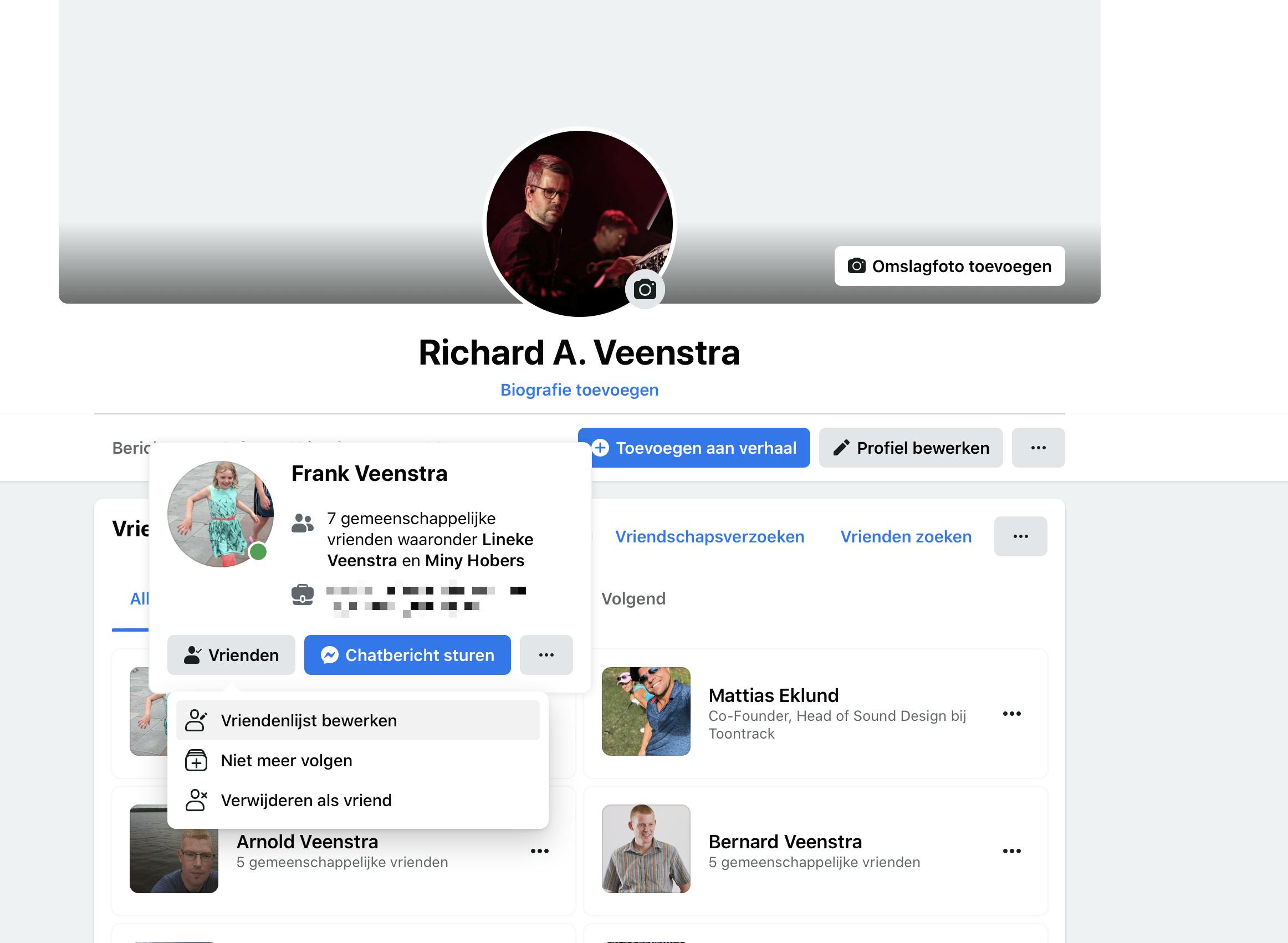 Een van de oorzaken van mentale gezondheidsproblemen kan het gebruik van social media zijn. Je hoeft niet meteen je Facebook- en Instagram-accounts op te heffen, er zijn ook wel andere manieren om FOMO (Fear Of Missing Out) te reduceren. Zodra je Facebook opent, geeft het allerlei berichten weer van je contacten. Je bent dan al snel geneigd om steeds maar verder te scrollen. Als je die stroom aan berichten wilt beperken, maar toch af en toe wat van een vriend wilt lezen, dan kun je ervoor kiezen om al je contacten te ontvolgen. Dit is niet hetzelfde als ze verwijderen als vriend! Open Facebook en klik bovenin op je accountnaam. Kies voor Vrienden en ga met je muis over de naam van een contact (als je dit op een pc doet). Klik op Vrienden en kies voor de middelste optie: Niet meer volgen. Je verwijdert niet de vriendschap, maar de berichten en vind-ik-leuks van deze persoon komen nu niet meer op je tijdlijn terecht. Ook fijn om te weten is dat je vriend dit niet te zien krijgt.