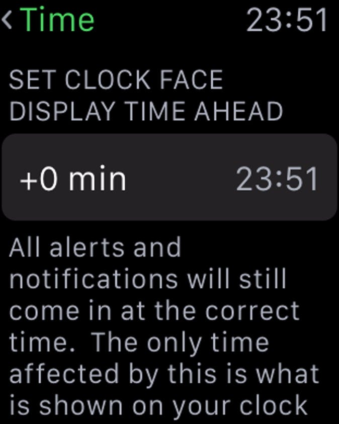 Ben je iemand die altijd te laat komt? Dan heeft de Apple Watch een perfecte functie. Je kunt de tijd zogenaamd een aantal minuten vooruit zetten. Het horloge houdt de échte tijd in de gaten in verband met alarm en kalendernotificaties, maar toont je een tijd die net iets later is dan de daadwerkelijke tijd, zodat je altijd op tijd de deur uit gaat. Je zou denken dat dit niet werkt, maar het zal je verbazen hoe goed je jezelf kunt foppen.