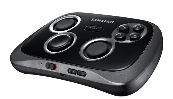 Samsung heeft zijn eigen controller ontworpen voor smartphones en tablets. De Samsung Smartphone GamePad bevat bluetooth V3.0 en weegt ongeveer 200 gram. Het apparaat laadt op via micro-usb en ondersteunt Android 4.1 en hoger. De controller is geschikt voor toestellen van 4 tot 6 inch. Je kunt je smartphone ook bovenop je controller bevestigen en krijgt op dit moment toegang tot maar 38 games uit de Samsung Store. Dit wordt met updates uitgebreid naar honderd games. Als je een Samsung Smart tv hebt of een extra hdtv-adapter aanschaft, kun je de games op groot scherm spelen.