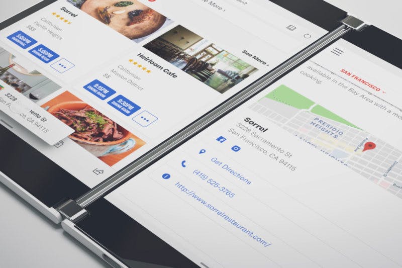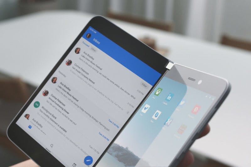 Daarmee lijkt Microsoft in te springen op de trend van de opvouwbare telefoon. Het verschil is alleen dat het scherm van de Duo niet opvouwbaar is, maar dat de twee 5,6-inch-schermen via een scharnier inklappen. Bij een opvouwbare telefoon kun je het toestel dan nog gebruiken, maar bij de Duo is dat niet het geval. Je moet de smartphone echt uitklappen, voordat je het kunt gebruiken.