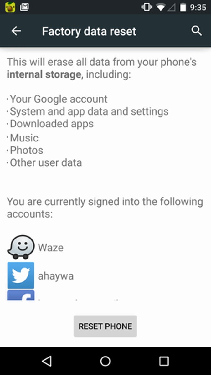 Ga naar Settings op je Android-telefoon, druk op Security en zoek naar de Encryption-optie. De telefoon moet ingeplugd en volledig opgeladen zijn, en het proces kan meer dan een uur duren, maar in ieder geval kun je er gerust op zijn dat je data niet zomaar benaderd kan worden nadat je de fabrieksinstellingen hersteld hebt. Ga verder en reset je apparaat in het Backup & Reset-menu onder Settings en wacht tot het proces voltooid is. Daarna kun je het apparaat uitschakelen, je simkaart verwijderen (en MicroSD-kaart als je er eentje hebt), en bedenken wat je met je oude apparaat wil gaan doen.