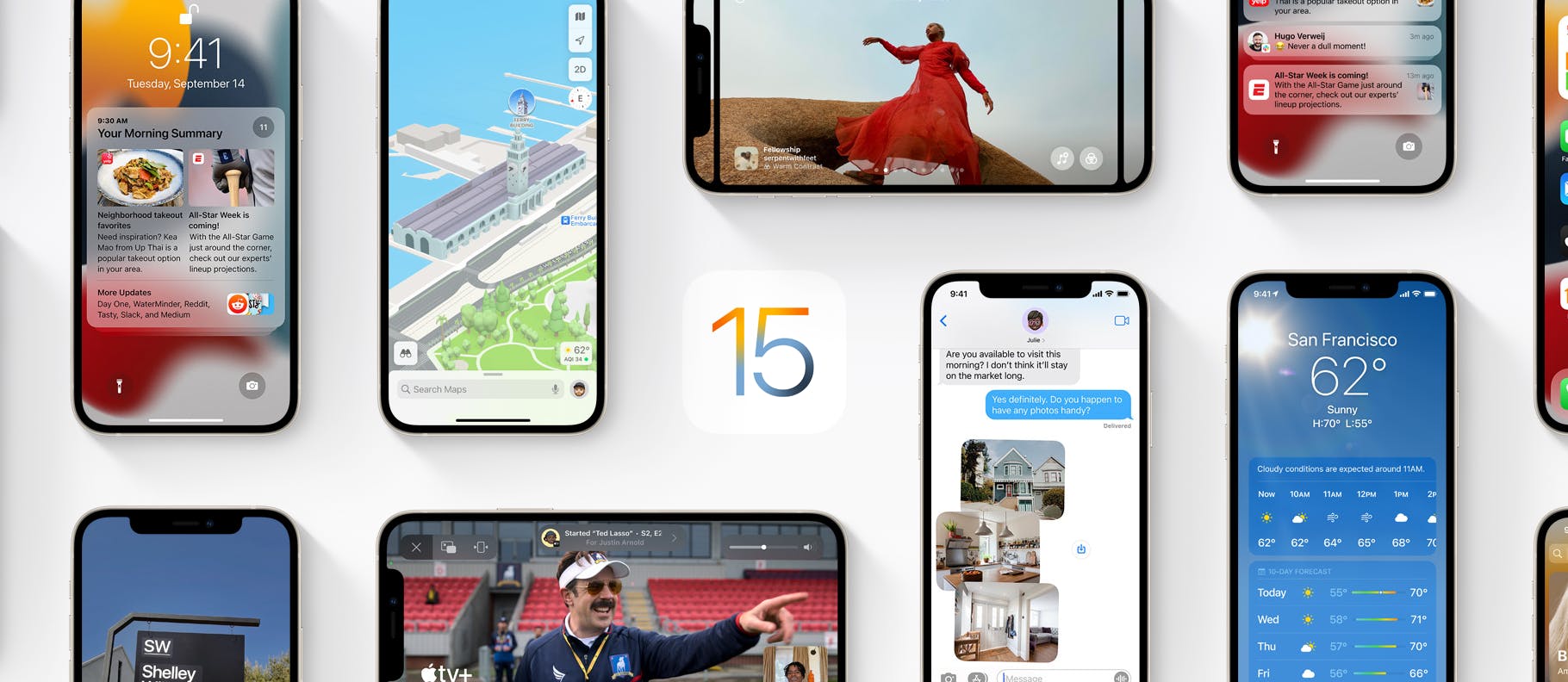 iOS 15 voert onder meer verbeteringen door in de audio- en videokwaliteit van FaceTime en via Gedeeld met jou kun je snel zien welke foto’s, video’s en andere content je hebt ontvangen via de Berichten-app. De focusfunctie helpt je dan weer om afleidingen te verminderen door meldingen te filteren op basis van je huidige activiteit.