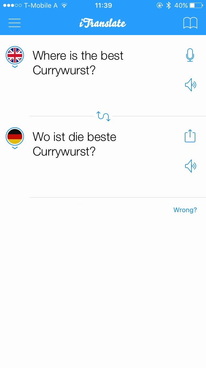 In tegenstelling tot Google Translate krijg je bij deze app niet alle opties gratis. Voor 6,99 euro krijg je de premium versie van de app, waarbij je onder andere stemherkenning als extra optie krijgt. Hiermee kun je iemand iets in een vreemde taal laten inspreken in je iPhone, waarna de app dit vertaalt. Een erg handige optie die over het algemeen redelijk werkt. Itranslate is door dit soort opties een van de populairdere vertaalapps. We moeten ook zeggen dat we met het vertalen van zinnen uit bekendere talen bij deze app meer succes hadden dan bij Google Translate. De methodiek van deze app is beter toegesneden op het vertalen van langere frasen, maar is net als Google Translate nog niet helemaal perfect. Toch kom je met deze app een behoorlijk eind als je een goede vertaling nodig hebt.