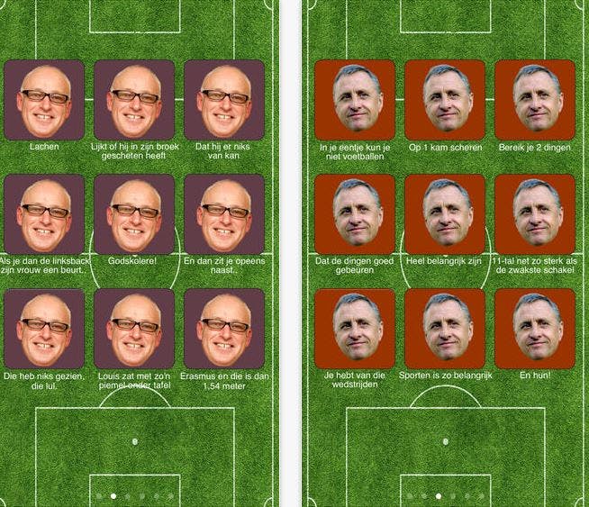 Het Nederlands voetbal zou niet hetzelfde zijn zonder de legendarische quotes van Louis van Gaal, Johan Cruijff, Jack van Gelder en Johan Derksen. Deze app geeft de beste quotes van je voetbalhelden weer. Om Cruyff aan te halen: je moet niet alles op 1 kam scheren en een 11-tal is net zo sterk als de zwakste schakel.