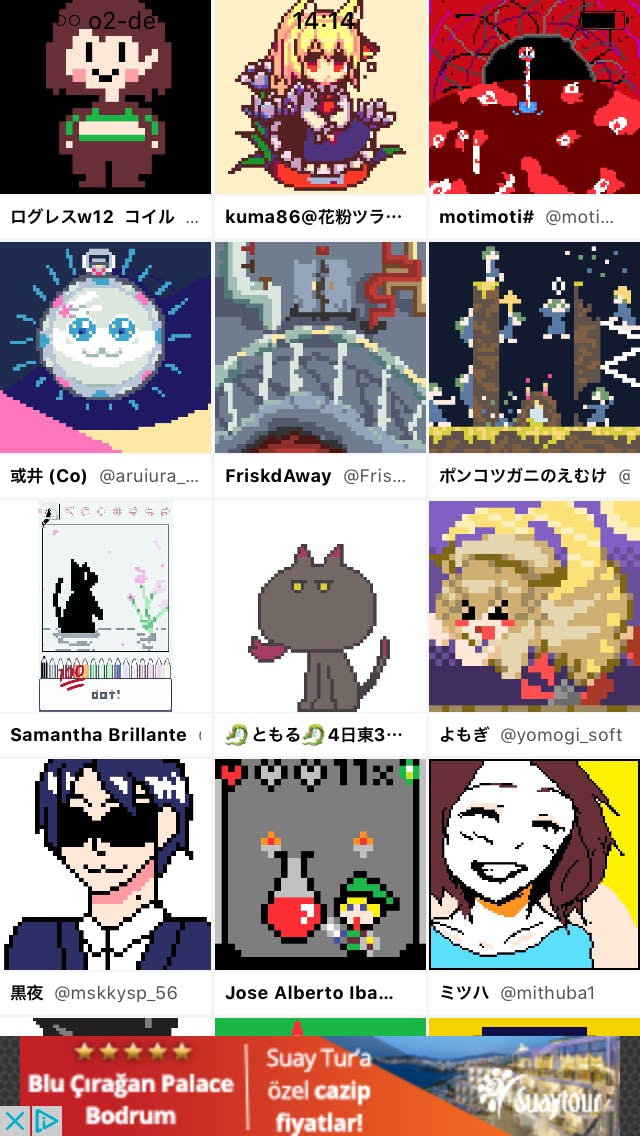 Dotpict is een app waarmee je gepixelde tekeningen kunt creëren, denk aan icons of figuren die zo uit Super Mario of Prince of Persia kunnen komen. Je bepaalt hoe groot je canvas is en kiest een kleurenpalet. Navigeer met je potloodje over het canvas, selecteer een kleur en tik op Dot! Je moet wel enig tekentalent hebben om een leuk resultaat te kunnen behalen. Heb je inspiratie nodig, kijk dan wat andere gebruikers hebben getekend met de app door naar het thuisscherm te gaan.