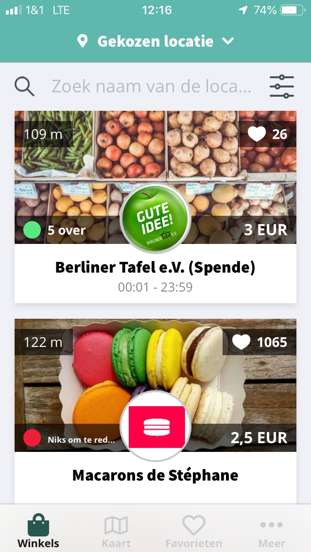 Voedsel weggooien is natuurlijk zonde! Om voedselverspilling tegen te gaan, bieden steeds meer winkels, bakkerijen en restaurants eten aan voor een prikkie. Dit zijn gerechten of producten die anders weggegooid zouden worden. Als consument kun je zien welke winkels in de buurt nog leftovers hebben, je herkent ze aan de groene stip. Tik erop om te zien wat ze nog precies over hebben. Je koopt het product via PayPal of je creditcard en haalt het dan af tijdens de openingstijden van de winkel of het restaurant. Vooralsnog is het aanbod in de grote steden een stuk uitgebreider dan elders.