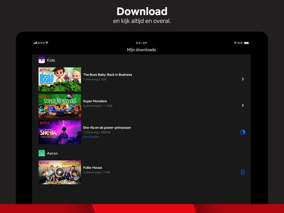 Hoef je geen live televisie te volgen in je vakantie, maar wil je wel graag je favoriete series kijken in je hotel of aan het strand? Weet dan dat je met Netflix je hele vakantie zoet kunt zijn, zelfs zonder internetverbinding. De database van Netflix groeit wekelijks en heeft kaskrakers als House of Cards, Black Mirror, The Crown en Stranger Things online staan. Vrijwel alle series kun je offline opslaan. Je doet dit door in de app naar een aflevering te gaan en op de download-knop te tikken. Als je nu onderin op de download-knop drukt, dan zie je welke programma’s je naar je apparaat hebt gekopieerd. Je kunt de afleveringen alleen vanuit de Netflix-app kijken, ze staan dus niet als videobestand op je tablet. Wees je er van bewust dat de downloads niet onbeperkt offline zijn te bekijken, na een paar weken verlopen je downloads. Je kunt ze dan nog één keer verlengen, maar daarna is het voorbij en is de aflevering geblokkeerd voor offline gebruik. Uiteraard is online kijken wel altijd mogelijk. Sommige inhoud is in het buitenland niet beschikbaar en het kan dus voorkomen dat een aflevering in Frankrijk of Spanje niet is te bekijken. Een oplossing is om de app af te sluiten, je tablet even opnieuw te starten en de vliegtuigmodus aan te zetten. Start nu de Netflix-app en vaak is een aflevering nu wel weer beschikbaar. Tijdens het kijken moet je wel de vliegtuigmodus actief houden. Het kijken van offline Netflix-afleveringen is ook een prima idee voor lange vluchten. Zorg wel dat je een externe batterij voor je tablet mee hebt, want van een paar uur series kijken raakt je accu snel leeg. Als je veel Netflix-afleveringen offline wilt opslaan, heb je veel opslagruimte nodig op je tablet. Een hd-aflevering van drie kwartier neemt makkelijk 200 MB in beslag.