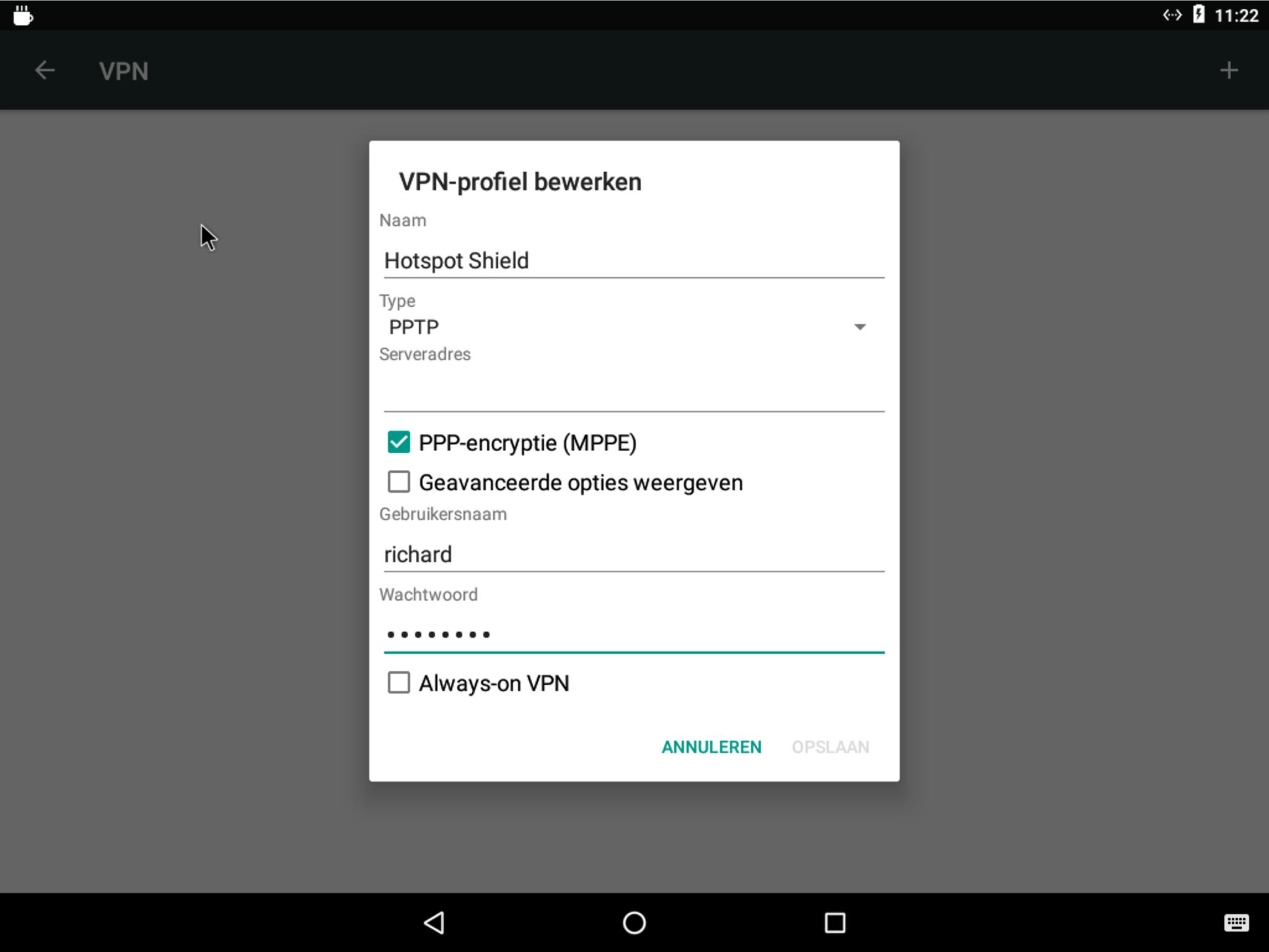 Pas wel een beetje op met het gebruik van gratis wifi-netwerken. Zeker netwerken waar je zonder wachtwoord toegang tot krijgt, kunnen een veiligheidsrisico met zich meebrengen. Hackers kunnen toegang krijgen tot informatie op je tablet. Het veiligst is om via een vpn-dienst te internetten als je een onbekend wifi-netwerk opgaat, maar hiervoor moet je een account hebben bij een vpn-dienst en dit kost vrijwel altijd geld. Hotspot Shield biedt je 500 megabytes per dag gratis aan, genoeg om even wat e-mails te checken en het nieuws te lezen. Windscribe is een goed gratis alternatief. Als je eenmaal de vpn-server hebt ingesteld, kun je die simpelweg aan- en uitzetten. De meeste vpn-diensten bieden een app aan waarmee je de verbinding gemakkelijk aan of uit kunt zetten. Wil je instellingen nalopen of wijzigen, dan ga je in Android naar Instellingen / Netwerk en internet / Geavanceerd / VPN. Op een iPad ga je naar Instellingen / VPN.