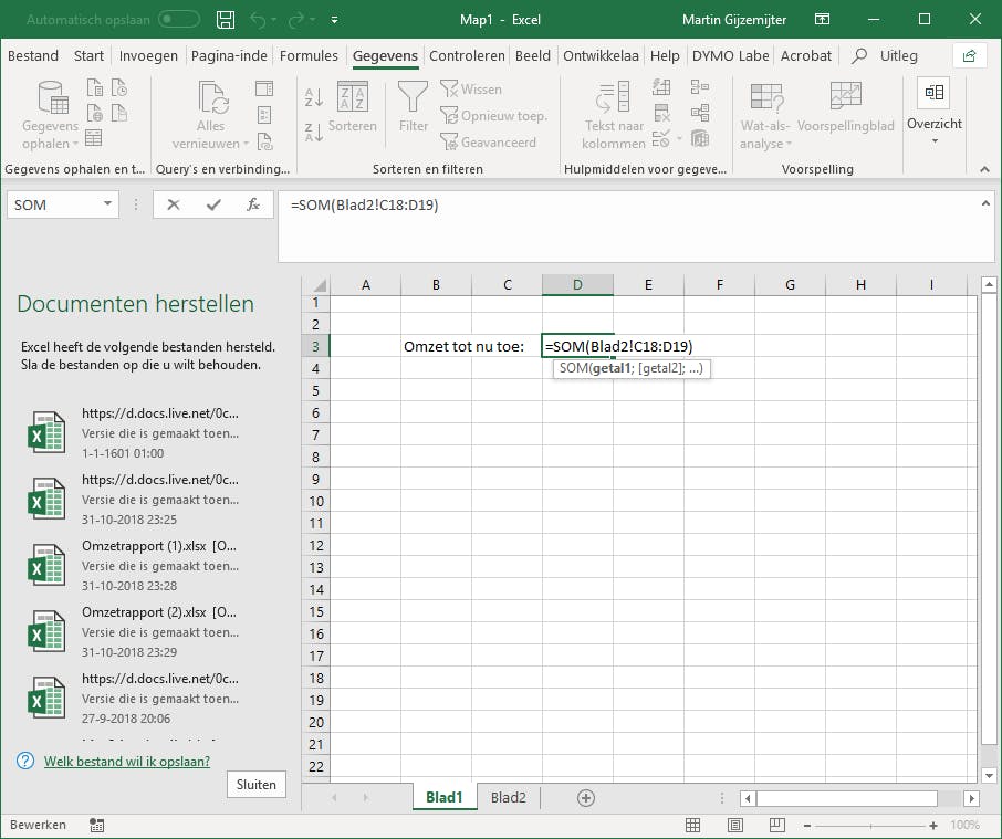 Deze laatste tip is fantastisch wanneer je een Excel-sheet hebt met daarin heel veel gegevens, maar je af en toe ook gewoon alleen een samenvatting daarvan wilt zien. Als dit het geval is, kun je een extra werkblad aanmaken waarin je deze samenvattingen toont. Je weet ongetwijfeld dat je, bijvoorbeeld, de som van een aantal cellen kunt weergeven in een andere cel. Het is echter helemaal niet verplicht dat die cel in hetzelfde werkblad moet staan als de rest van de gegevens. Dit betekent dus dat je de inhoud van een cel ook kunt tonen in een cel binnen een ander werkblad. Stel dat we een Excel-document hebben met daarin inkomsten en uitgaven, waarbij elke maand een apart werkblad heeft en je wilt af en toe ook snel inzicht in wat de totale inkomsten en uitgaven van het jaar tot nu toe zijn. In dat geval maak je een extra werkblad en klik je op de cel waarin je het totaal wilt weergeven. Vervolgens klik je in de formulebalk op de knop Functie invoegen en daarna op Som. Klik nu op het eerste werkblad en de waarde die je wilt meenemen in je som. Houd de Shift-toets ingedrukt, en klik op het tweede werkblad enzovoort. Laat de Shift-toets pas los als je alle gewenste tabbladen hebt gehad. Wanneer je nu op de Enter-toets drukt, zullen alle waarden worden opgeteld in het eerste werkblad. Dit kun je uiteraard ook met andere functies zo doen.