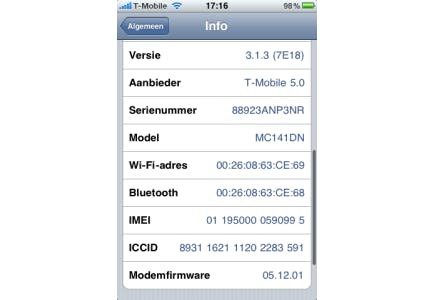 Sommige draadloze netwerken zijn voor extra veiligheid zó ingesteld dat alleen vooraf ingestelde apparaten toegang hebben. Dit gebeurt aan de hand van een unieke code, het zogeheten mac-adres. Op de iPhone wordt het mac-adres echter anders genoemd, namelijk 'Wi-Fi-adres'. Het staat vermeld in het Info-scherm. U komt hier via Instellingen, Algemeen, Info. U moet daarbij wel even een stuk naar beneden scrollen.