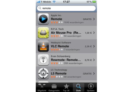 Om muziek en video's naar uw iPhone over te zetten, hebt u natuurlijk iTunes nodig. Sowieso bent u verplicht om iTunes te gebruiken als u een iPhone hebt. Kortom: u hebt iTunes op uw pc en waarschijnlijk gebruikt u dit programma ook om muziek op uw pc af te spelen. Het mooie is, dat u - als u uw geluidsinstallatie op uw pc hebt aangesloten - uw iPhone als afstandsbediening kunt gebruiken! U hebt hier de gratis app Remote voor nodig, die u in de App Store vindt. Zoek op 'Remote' en u ziet de app vanzelf bovenin de zoekresultaten verschijnen. Download nu eerst deze app.