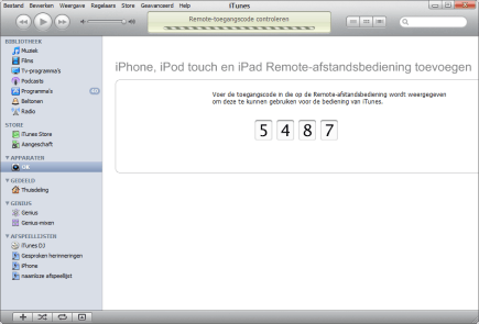 Zorg dat iTunes op uw pc is gestart en start daarna de Remote-app op uw iPhone. Klik op Voeg bibliotheek toe. U krijgt nu een toegangscode van vier cijfers te zien. Ga naar iTunes op uw pc. Als het goed is, ziet u dat in de linkerkolom onder Apparaten de naam van uw iPhone verschijnt. Klik hier op en voer de vier cijfers in. De code wordt gecontroleerd, dat is binnen een paar seconden gebeurd. Op uw iPhone ziet u nu de complete iTunes-bibliotheek van uw pc. U kunt nummers en afspeellijsten kiezen, afspelen, pauzeren en het volume regelen, gewoon vanuit uw luie stoel!