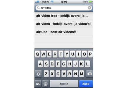 Nu het programma voldoende is geconfigureerd, wordt het tijd om aan de slag te gaan met de bijbehorende iPhone-app. Zoek op uw iPhone in de App Store naar 'Air video'. U hebt de keuze uit twee varianten: de volledige versie (€ 2,39) en een gratis probeerversie. Bij Air Video Free hebt u de keuze uit slechts een paar video's, maar dat is prima om de app eerst eens uit te proberen. Kies dus voor de gratis versie en installeer Air Video Free.