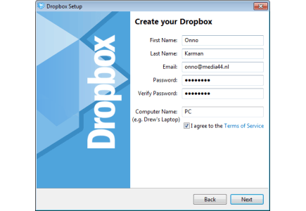 Installeer eerst Dropbox voor Windows en maak een gratis account aan.