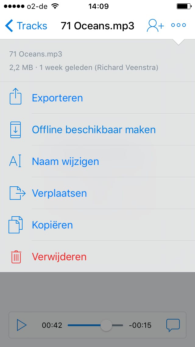 Als je onderweg je bestanden wilt kunnen inzien, dan is het verstandig om ze offline beschikbaar te maken. Ga naar een bestand en tik op de drie stipjes bovenin. Kies voor Offline beschikbaar maken en het bestand wordt naar je iPhone gedownload.
