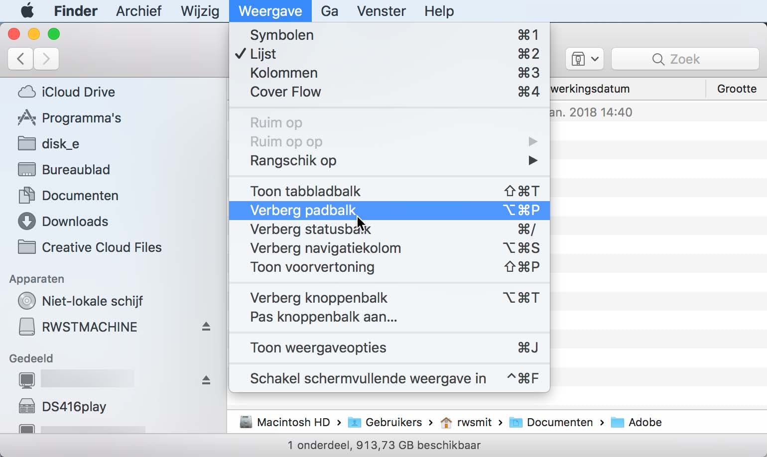 Voor bestandsbeheer in macOS moet je bij Finder zijn. Dit programma staat standaard helemaal links op het Dock. Na starten zie je inderdaad iets dat behoorlijk op een Verkenner-venster lijkt. Je vindt er je documenten en allerhande andere mappen. Maar ook je geïnstalleerde programma's in de map Programma's. Klik je daarop, dan heb je snel toegang tot alle software op je systeem. Praktisch, want er is natuurlijk vaak geen plek voor dat alles op het Dock. Vaak vind je hier ook - al dan niet in een map behorend bij een programma - een uninstaller, altijd handig om te weten. De weergave-opties van Finder zijn naar smaak aanpasbaar. Klik bijvoorbeeld in de menubalk eens op Weergave en klik vervolgens op Toon padbalk. Als je door de diverse (sub)mappen bladert zie je nu onderin het Finder-venster altijd het volledige pad vermeld. Via Weergave kan je bijvoorbeeld ook tabbladen activeren.
