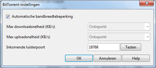 Hebt u een leuke film gevonden? Klik dan op de groene knop Download via .torrent. Er verschijnt een nieuw venster waarin u aangeeft met welk programma u wilt downloaden. U laat hier Opera gemarkeerd staan. Klik op de knop BitTorrent-instellingen. Als u een maximale download- en uploadsnelheid wilt instellen, haalt u het vinkje weg voor Automatische bandbreedtebeperking. Selecteer in het uitrolmenu vervolgens de gewenste waarden. Achter Inkomende luisterpoort ziet u een poortnummer staan. Standaard is dat 18768, maar het staat u vrij om een ander nummer te selecteren. Voor de volgende tip is het handig als u de getallen op een briefje schrijft. Helaas ondersteunt de bittorrent-functie van Opera geen UPnP-technologie, waardoor u de juiste poort binnen uw router handmatig dient open te zetten.