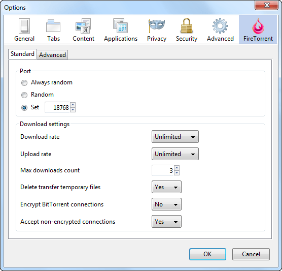U bepaalt zelf welke netwerkpoort FireTorrent gebruikt.