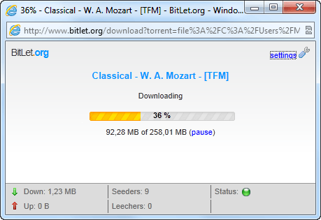 BitLet opent een pop-upscherm in uw browser, waarin u het downloadproces kunt volgen.