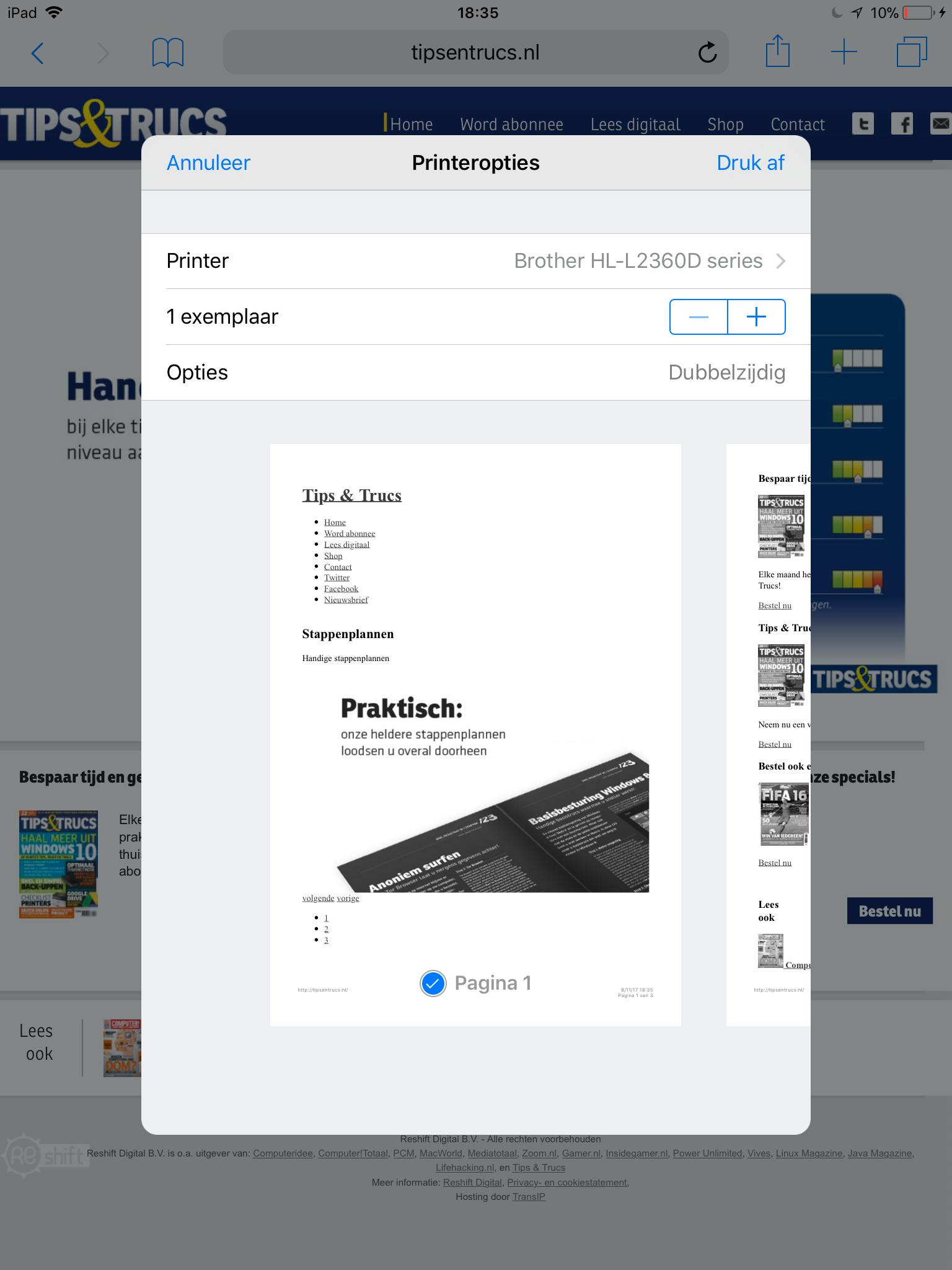Het is ook handig om op je thuisprinter af te kunnen drukken via internet