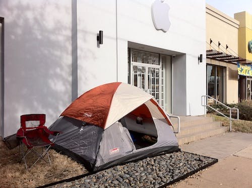 Eerste tentje staat al voor de Apple Store in VS.