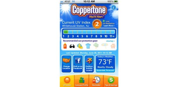 Nadeel is wel dat MyUV Alert constant andere producten van Coppertone aanbeveelt (in zowel het Tips & Savings-gedeelte als in het Recommended onderdeel van de Suncare Profiles). Desondanks heeft de app voldoende nuttige functies om de advertenties en kortingsbonnen te rechtvaardigen. De UV-indicator is uniek in de zin dat hij zichzelf updatet naar de huidige tijd wanneer hij gebruikt wordt, terwijl andere apps gewoon het hoogst voorspelde UV-niveau voor die dag laten zien.