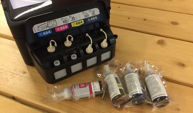 Epsons EcoTank-concept draait voornamelijk om lage afdrukkosten en in dat opzicht stelt Epson niet teleur. De flesjes inkt hebben een inhoud van 70 ml waarbij je met de zwarte inkt 4000 afdrukken kunt maken terwijl de kleureninkt genoeg zou moeten zijn voor 6500 afdrukken. Reken je dit om naar kosten per afdruk inclusief de aanschafprijs van de printer dan kom je op 1,8 cent voor een zwart-wit-afdruk terwijl een keurenprintje je 5 cent kost. Ben je toe aan nieuwe inkt, dan ga je pas echt besparen. Je hebt een complete set inkt voor veertig euro. Een zwart-wit-afdruk kost je dan 0,25 cent terwijl een kleurenafdruk op 0,71 cent komt.