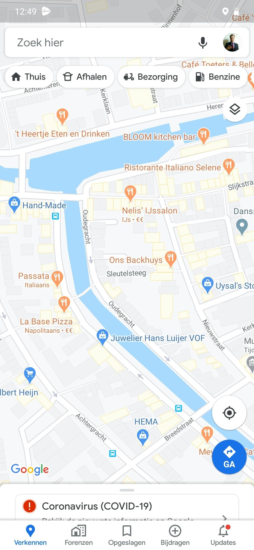 Allereerst dien je ervoor te zorgen dat je de meest recente versie van Google Maps op je smartphone hebt staan. Daarvoor ga je naar de downloadwinkel op Android of iOS en klik je op updaten wanneer die optie beschikbaar is. Is die optie niet beschikbaar, dan is de kans groot dat je de update al automatisch gekregen hebt. Open nu de app en tik vervolgens op het zoekvenster. Als je de juiste appversie hebt, dan staan er nu opties in beeld als Afhalen en Bezorging. Als je op één van die twee opties tapt, dan zie je de restaurants die afhalen en bezorging aanbieden als service.