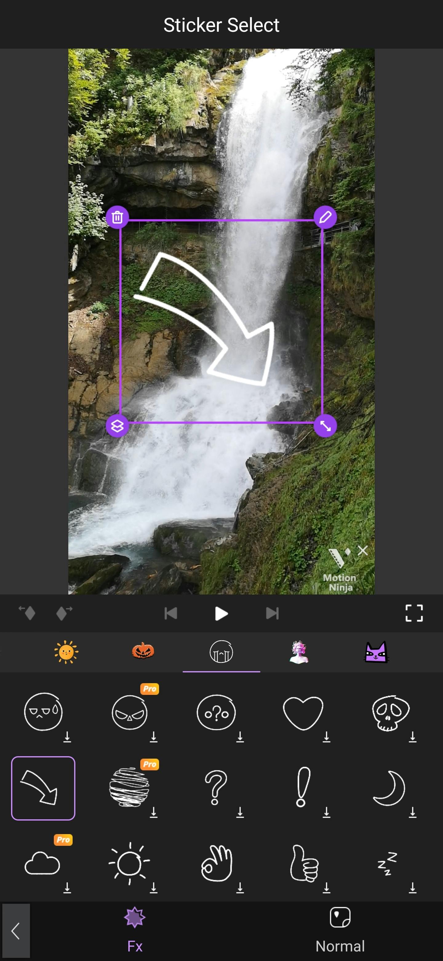 Stel dat een roofvogel voorbijvliegt terwijl je een waterval aan het filmen bent. Dat deze vogel sierlijk door het beeld cirkelt, zal niet iedere kijker zomaar opmerken. Daarom voeg je bij de start van dit filmpje een sticker toe met een pijltje (of een verhelderende tekst zoals “Roofvogel”), geeft het de gewenste grootte en plaatst het vlak naast de vogel.
