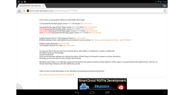 Stap 1. Je zult een aantal gratis apps moeten downloaden om Flash op je Jelly Bean tablet te laten werken, waaronder Flash Player zelf. Maar aangezien deze op je tablet niet ondersteund is, zul je ergens anders moeten zoeken dan op Google Play. Zoek online naar "android flash player apk" of ga naar deze forum thread van XDA Developers, waarin gebruiker stempox een downloadlink aanbiedt.