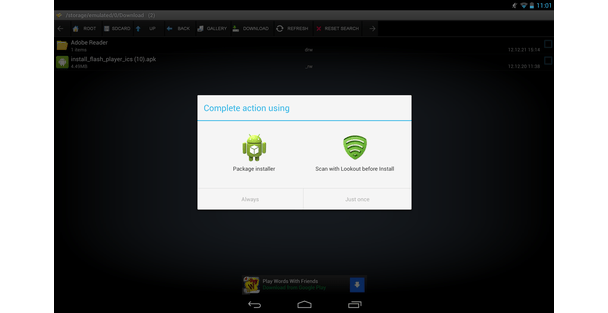 Stap 3. Zoek nu je gedownloade Flash Player op en druk erop om de installatie te starten. Als je downloadnotificatie verdwenen is, zul je een gratis bestandenbrowser app moeten gebruiken zoals Android File Manager om het bestand te kunnen vinden (deze is niet zichtbaar in de Downloads map van Android).