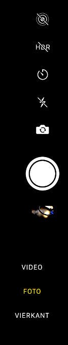 De timer-knop spreekt voor zich, net als de cameraknop waarmee je tussen de camera aan de achter- en voorkant schakelt. Met de keuzering onder de ontspanknop kies je voor video of foto. Kies overigens bij voorkeur nooit voor de optie VIERKANT. Daarmee maak je vierkante foto's, maar zonder drastisch uitsnijden maak je daar nooit meer een foto in 'normale' beeldverhouding van. Andersom kan altijd achteraf. Check ook de andere beschikbare foto- en filmopties vooral even en probeer ze uit.