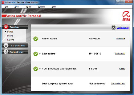 Gratis beveiligingsprogramma's steken steeds vaker de kop op. Qua basisbescherming doen ze niet veel onder voor de grote securitysuites. Ons bevalt Avira's gratis security AntiVir Personal 10.0 goed. Het programma blijkt goed in staat virussen, wormen en trojans te vinden en verwijderen. Ook de interface en de instellingsmogelijkheden zijn uitgebreid. Keerzijdes zijn er ook: het blokkeert bijvoorbeeld virusbesmettingen via websites niet en bovendien is er geen Nederlandstalige versie verkrijgbaar.