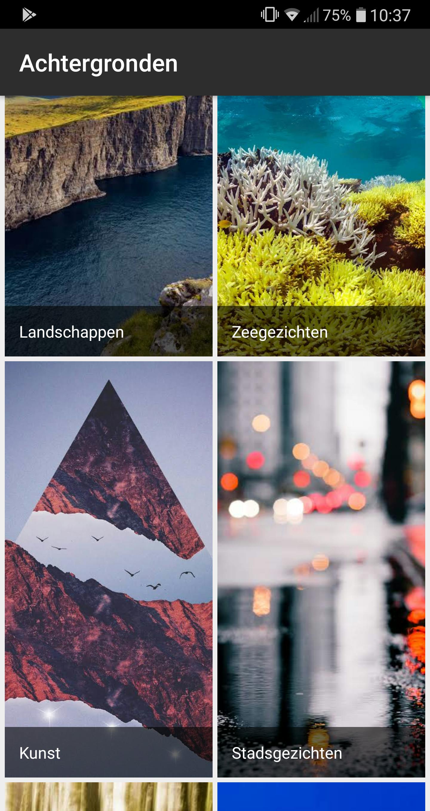 Ben je niet alleen gek op het Material Design van Android One, maar ook op die prachtige achtergronden? Dan kun je in de Google Play Store de app ‘Achtergronden’ downloaden van Google. Hier staan de standaard Android One-achtergronden in verschillende galerijen zoals Aarde, Kunst, Stadsgezichten en Landschappen.