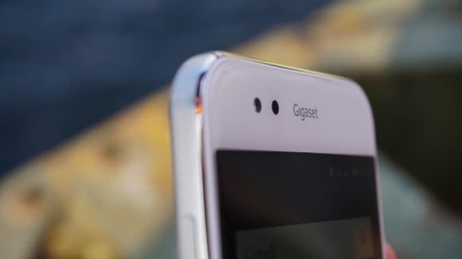 De Gigaset ME smartphonelijn komt in drie uitvoeringen, de budget Gigaset ME Pure (349 euro), de Gigaset ME (5 inch, 449 euro) en de Gigaset ME Pro (5,5 inch, 549 euro). De budgetvariant heeft een aluminium achterkant, terwijl de andere twee versies een glazen achterkant hebben. Om het toestel zit een dikke metalen rand. Het gebruikte materiaal geeft je het gevoel een smartphone van hoogwaardige kwaliteit in handen te hebben, alleen ligt het door zijn dikkere bouw niet fantastisch in de hand.